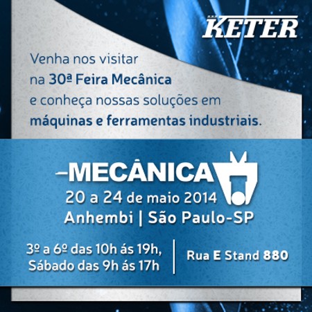 A Keter Comercial e Importadora estará presente 30ª Edição da Feira Internacional de Mecânica 2014, que será realizada de 20 a 24 de Maio de 2014 no Anhembi.